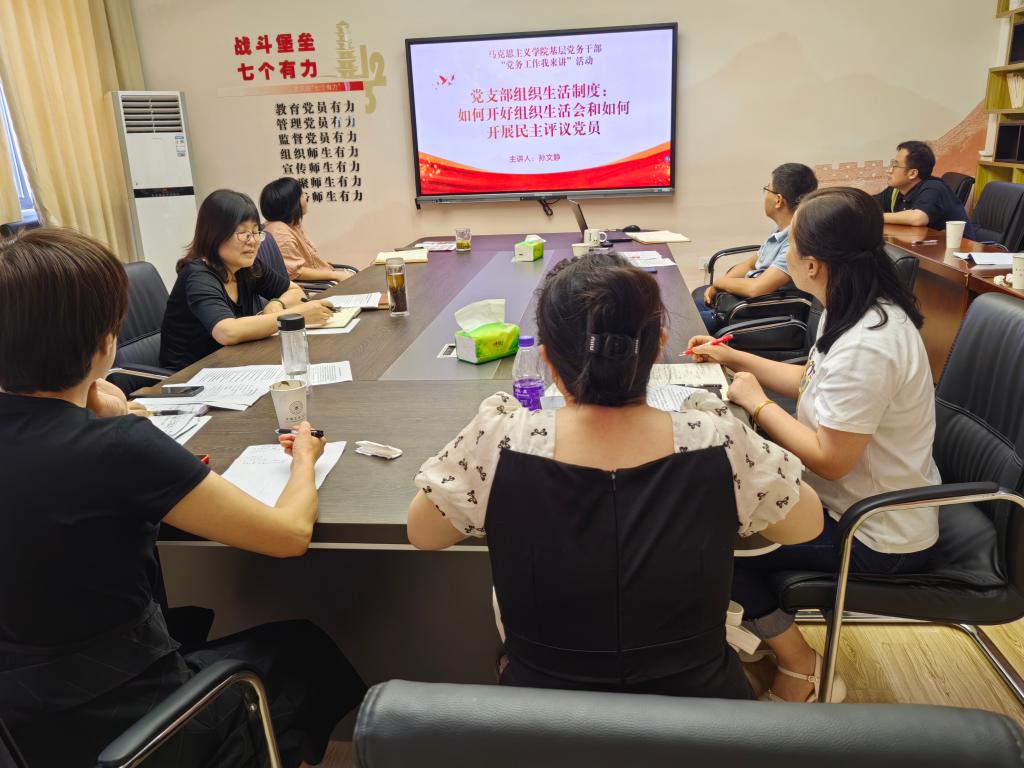 随后,徐惠、教工第四党支部书记孙文静分别以“健全上下贯通、执行有力的组织体系”“党支部组织生活制度”为题作了党务专题培训。