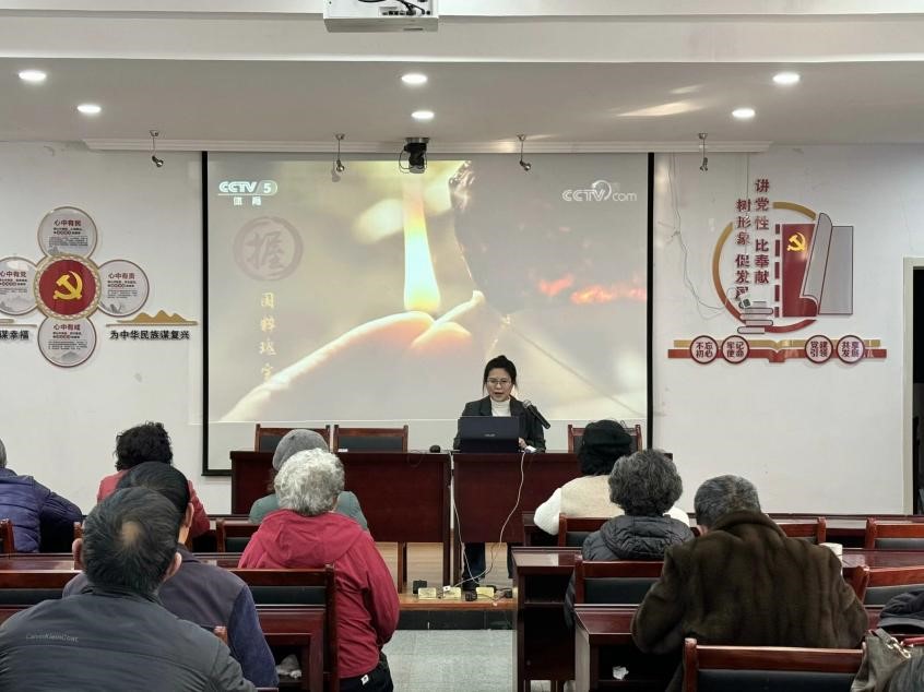 宣讲团成员王雨晴带领大家学习了习近平总书记对宣传思想文化工作作出的重要指示。她用“敦煌女儿”樊锦诗和“巍巍长城”守护人尚珩的鲜活事例讲述了如何通过守正绘就文化自信的辉煌底色,用杭州亚运会创意视频《功成》讲述了如何通过创新绘就新时代文化自信之图。