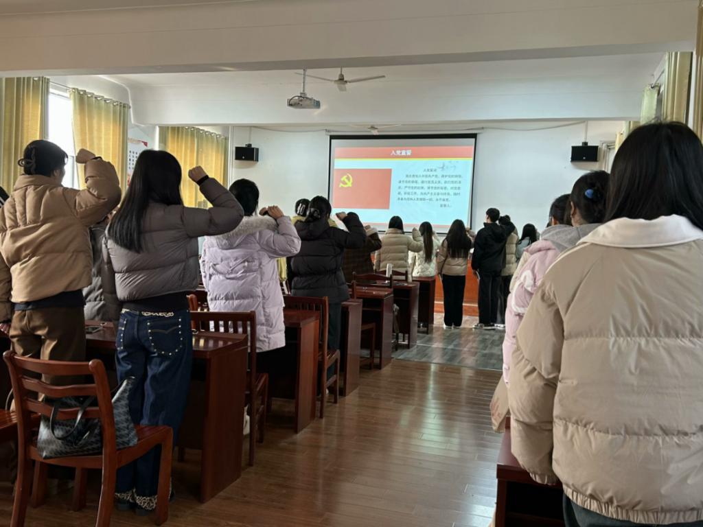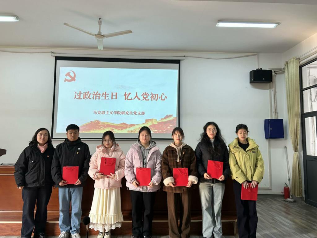 为进一步强化党员身份意识和责任意识,增强党支部凝聚力和向心力,2024年12月15日,研究生党支部举行新发展党员入党宣誓仪式暨党员集中过政治生日主题党日活动。会议由支部书记苗云飞主持,学院党委书记徐惠出席会议,支部全体党员参会。