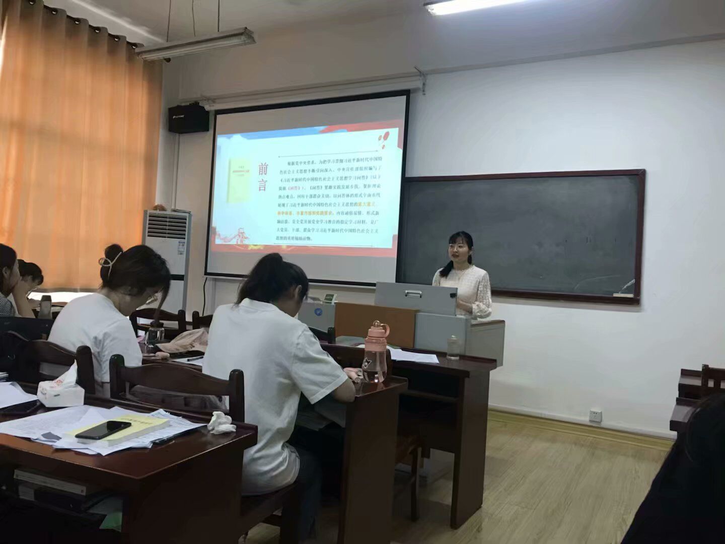 本次读书汇报会一共有七位同学分享了读书心得。秦姗姗、刘像玲、张雅楠三位同学对《习近平新时代中国特色社会主义思想学习问答》进行了汇报,她们纷纷表示应站在“两个一百年”奋斗目标历史交汇的关键节点,用习近平新时代中国特色社会主义思想这一马克思主义中国化的最新理论成果武装头脑。杜鑫同学分享的《毛泽东 邓小平 江泽民 胡锦涛关于中国共产党历史论述编摘》一书深刻阐释了党在各个历史时期的光辉历程、理论成果、宝贵经验和伟大精神。张晓羽、张紫薇两位同学分享的是《中国共产党简史》的研读心得,这本书展现了我们党自诞生之日起就把为中国人民谋幸福、为中华民族谋复兴作为自己的初心和使命的历史。为此,党把中国人民团结凝聚成万众一心的磅礴力量,进行了前赴后继的不懈奋斗。顾懿同学就研读的《论中国共产党历史》进行了汇报,他认为这本书对增强“四个意识”、坚定“四个自信”、做到“两个维护”具有十分重要的指导意义。报告会后,其他同学也纷纷参与了讨论和交流,收获很大。