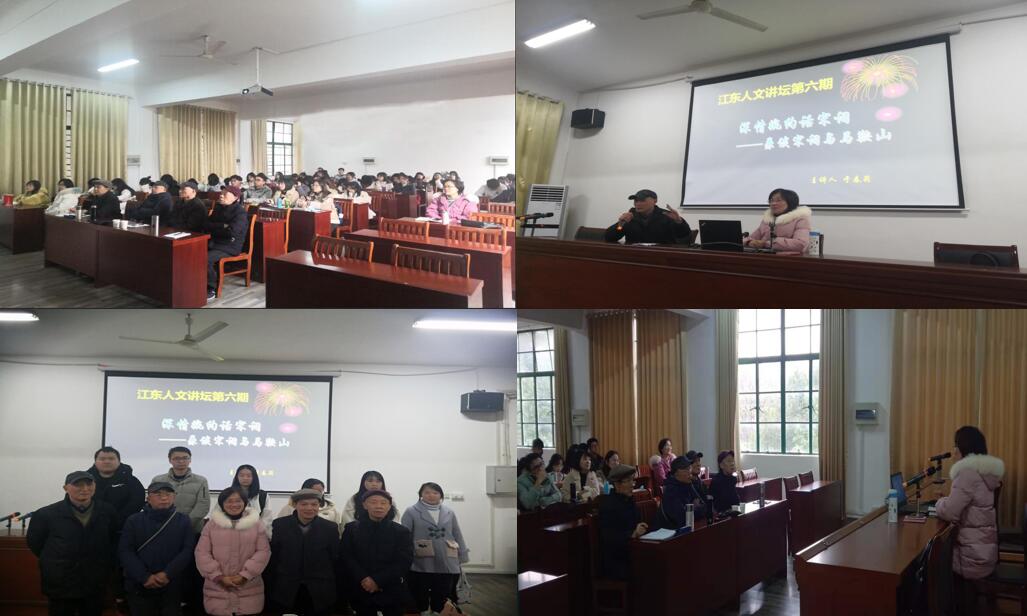 2020年12月13日下午,安徽工业大学马克思主义学院在325-327学术报告厅成功举行了主题为“深情婉约话宋词——兼谈宋词与马鞍山”的“江东人文讲坛”第六期讲座。本次讲座由我院教师于春莉博士主讲,我校爱好诗词的同学们到场聆听了报告,马鞍山市社会科学界联合会领导、部分对诗词感兴趣的马鞍山市写作与传播学会会员和我校教师也出席了本次讲座。会议由写作与传播学会前任会长、马鞍山市党校教授张庆满主持。