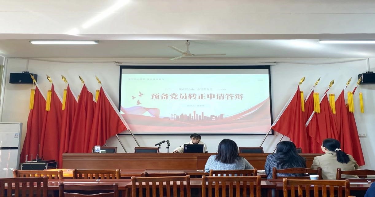 随后召开了预备党员转正答辩会。参加答辩的7名预备党员分别从自我介绍、对党的认识、学业科研情况、参与活动与实践经历、获得荣誉及对未来的展望等方面进行陈述,汇报了自己在预备党员期间的表现,总结回顾了在预备期一年间的成长、进步和不足之处,对自身存在的不足之处提出了改进方案以及未来规划,再次表达了自己加入中国共产党的坚定信念。答辩组成员围绕党的基本知识及理论、预备期表现及党员先锋模范作用发挥等情况对答辩对象进行提问,并结合答辩现场表现作出评议。