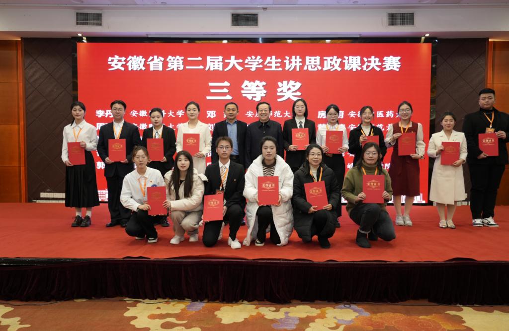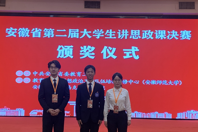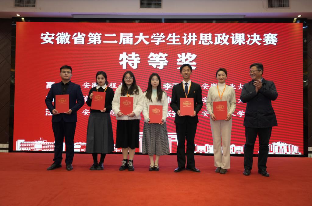 12月22日,由中共安徽省委教育工委主办,教育部高校思想政治工作队伍培训研修中心(安徽师范大学)、安徽师范大学yl7703永利承办的安徽省第二届大学生讲思政课决赛在芜湖举行。经过激烈的现场角逐,我校获特等奖1项、一等奖1项、三等奖1项。