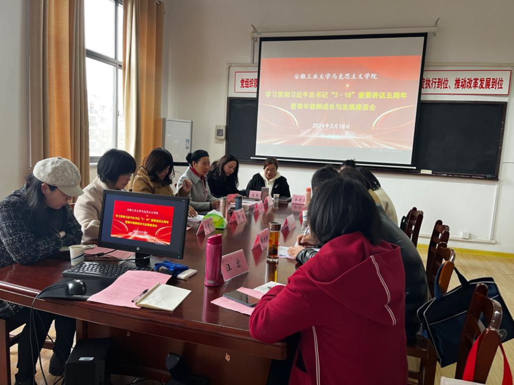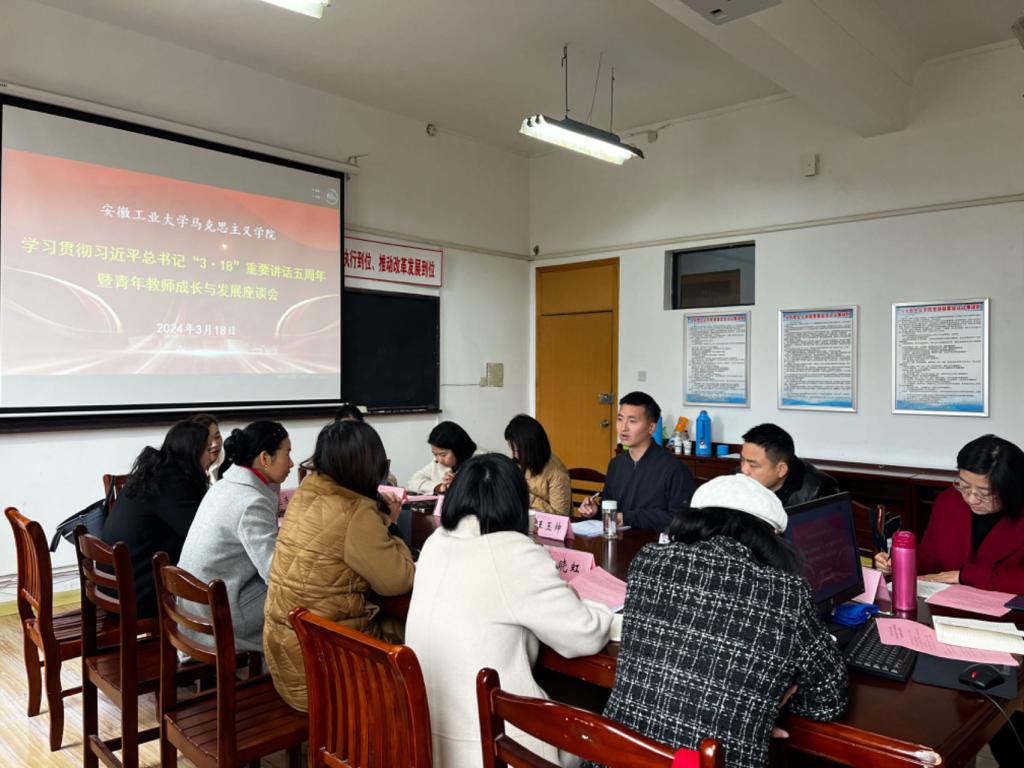 3月18日上午,yl7703永利召开了学习贯彻习近平总书记“3·18”重要讲话五周年暨青年教师成长与发展座谈会。yl7703永利领导班子成员、青年博士教师、各类教学获奖教师等参加座谈会。