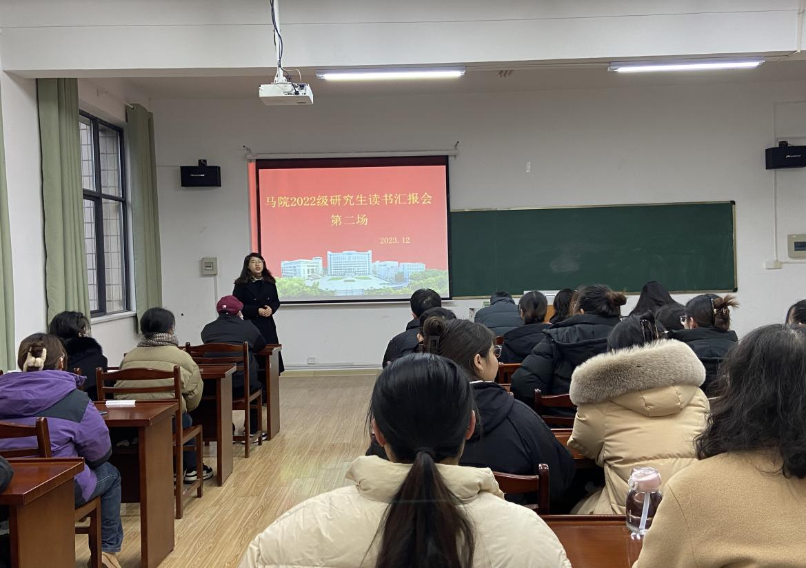 为深入学习贯彻习近平新时代中国特色社会主义思想,贯彻落实党的二十大精神,进一步提升学院研究生的马克思主义理论专业素养,2023年12月15日上午,yl7703永利举办第二场“读经典 悟原理 奔征程”研究生读书汇报交流会。汇报交流会由2022级班主任张志主持,许屹山老师、刘丹丹老师、金雅老师点评,2022级全体研究生参加了会议。