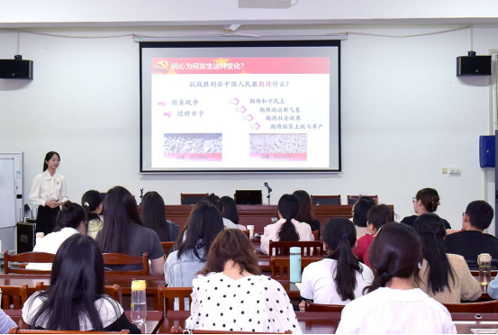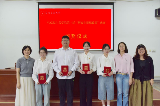 比赛中,6组参赛选手分别选取生态文明、青年创新、人民力量、文化现象、乡村振兴、人生态度等主题展开讲解。选手们的教学目标明确,讲解思路清晰,课件制作精美,板书设计精简,既蕴含着深刻的道理学理哲理,又注意结合身边的案例,为在场的师生们呈现了一堂别具一格的思政课。经过激烈角逐,尹馨萍团队获得一等奖,王琪、王雨晴团队获得二等奖,蒯胜平、汤晨、李红团队获得三等奖。