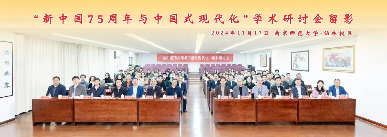1116日到18日,由中华人民共和国国史学会高校教学与研究专业委员会、南京师范大学联合主办,《思想理论教育导刊》《思想教育研究》《思想战线》等杂志社协办的“新中国75周年与中国式现代化”学术研讨会在江苏南京举行,来自中央文献研究室、中国社会科学院、军事科学院、北京大学、上海交通大学、厦门大学、北京师范大学、南开大学、南京大学、南京航空航天大学、河海大学、东南大学、吉林大学、浙江大学、东华大学、安徽工业大学等多所高校和科研院所的专家学者齐聚一堂,围绕“新中国75周年与中国式现代化”进行深入研讨交流。